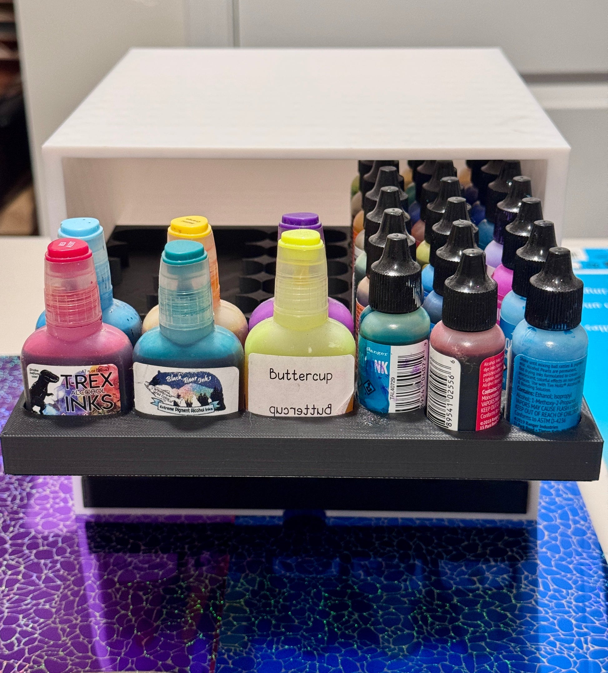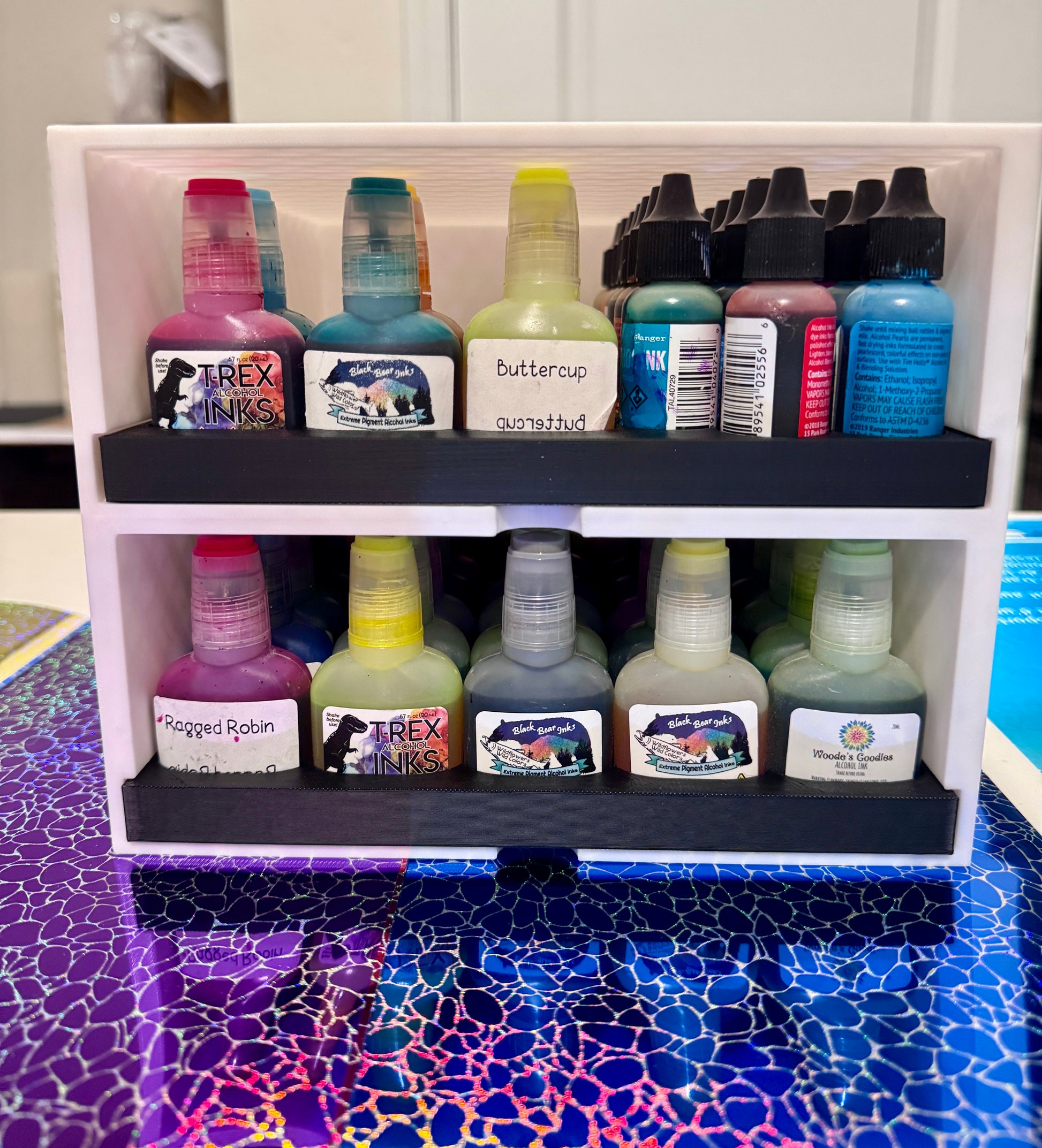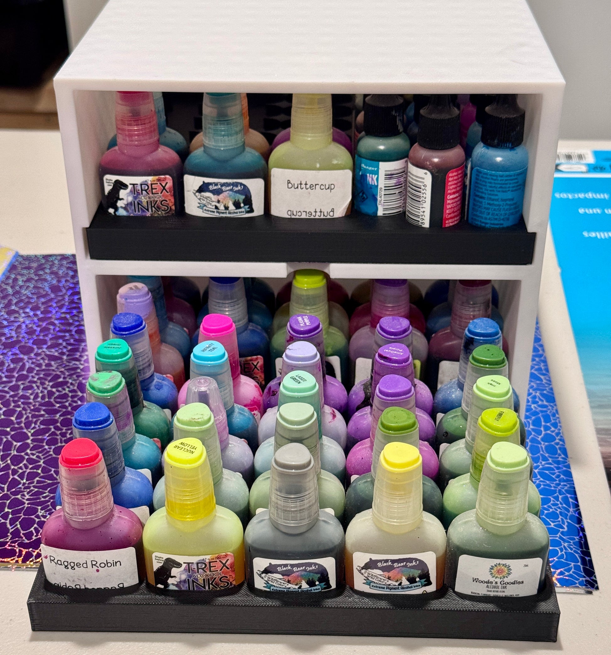 Designed simply to neatly hold up to 56 Tim Holtz style Inks or up to 45 T-Rex/Black Bear/Woode's Goodies. Or a combination of both. May fit other companies, but exact fit may vary.